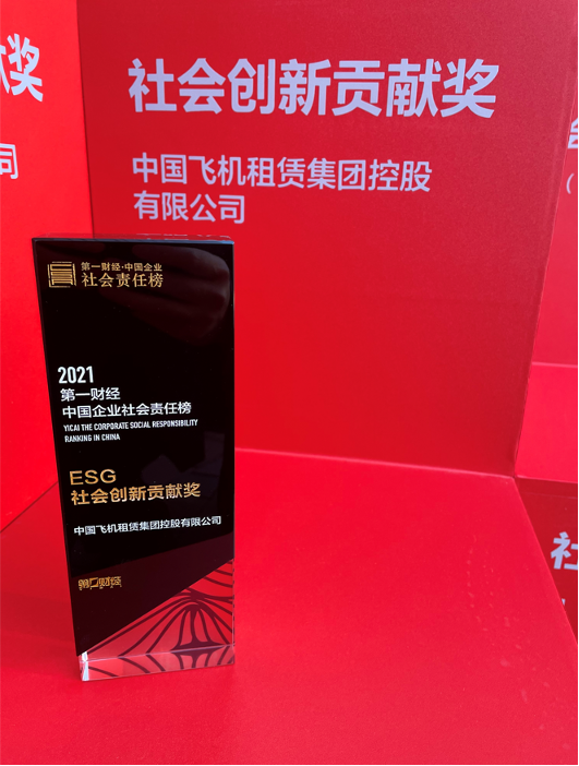20 December 2021, Hong Kong - China Aircraft Leasing Group Holdings Limited ("CALC" or the “Company”, HKSE stock code: 01848; together with subsidiaries, the “Group”) a full value chain aircraft solutions provider for the global aviation industry, is pleased to announce that CALC has received the "ESG - Social Innovation Contribution Award" in Chines Enterprises CSR ranking 2021 by YiCai, one of the most influential financial press in China.The award was granted to CALC as recognition in its unique business model, which, built on a footing of traditional aircraft leasing business, to have successfully explored valued solutions long the aircraft industry chain, as well as innovative financing models.